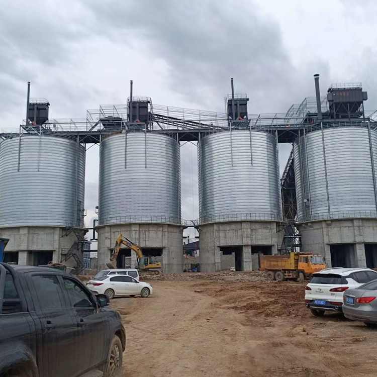 接收与清理设置在筒仓中央该形式筒仓一般采用对称排列,提升机井架固定,经过提升后的物料通过仓顶溜管进人筒仓。这种形式省去了仓顶输送设备和上通廊,从而节省了建造费用,缩短了建造工期。对于贮存时间要求较长的大型粮库,则应根据物料的流向、场地情况、工艺要求等合理地配置投料口、工作塔、烘干塔及贺州钢板仓的位置。国华钢板仓介绍了这几种常见的进料形式,实际中可将各种形式相互组合,相互渗透,根据实际情况合理搭配,灵活选用。